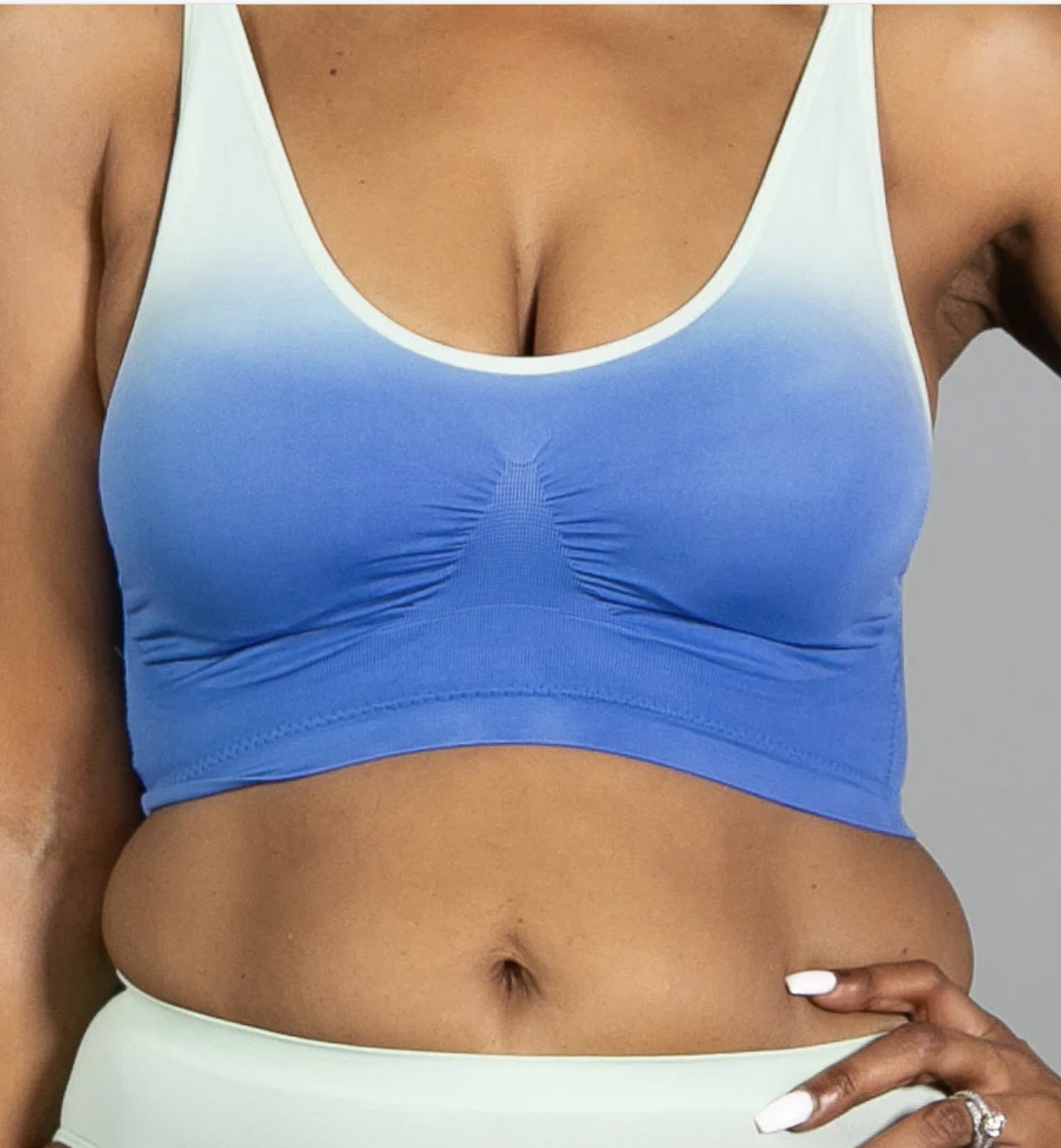 Soft 4-way stretch seamless knit pull-over bralette with removable padding and adjustable straps. Matching brief available.